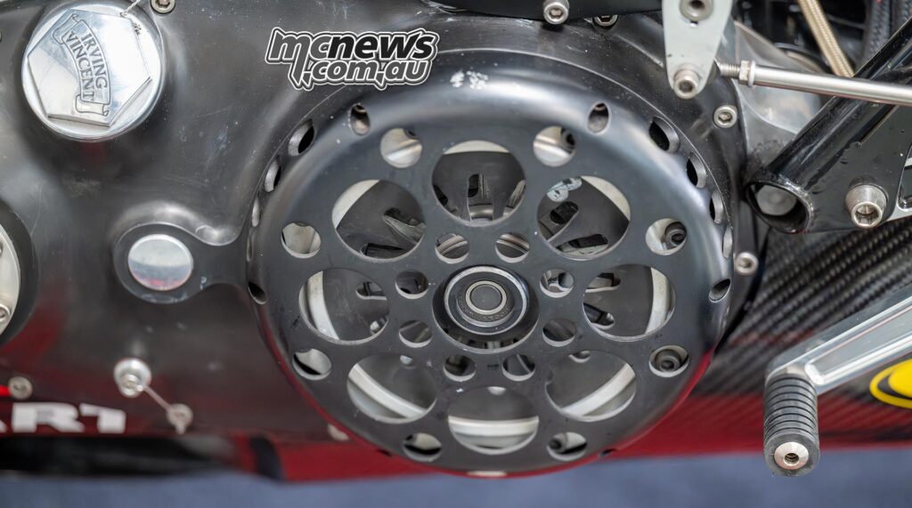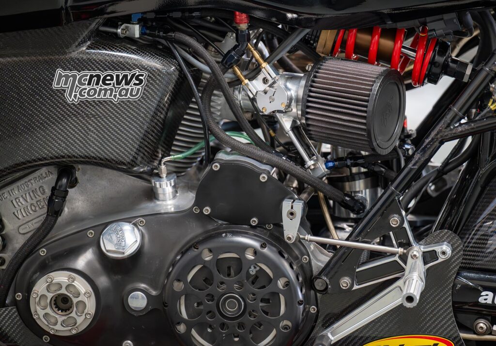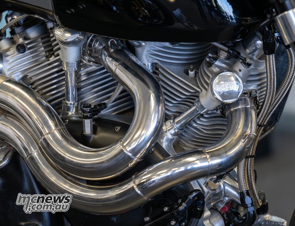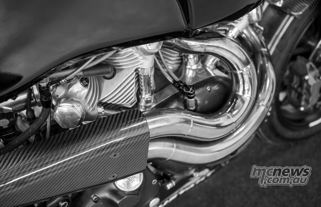 “It’s in all probability by the best way it’s with being, you realize, a V-twin and simply slim. And it’s nonetheless the outdated design of the unique, effectively, Phil Irving’s design from 1946 of an oil tank stress member and a triangulated swing arm, and there’s no body. The engines are the body. It’s only a geometry which we’ve modernised.