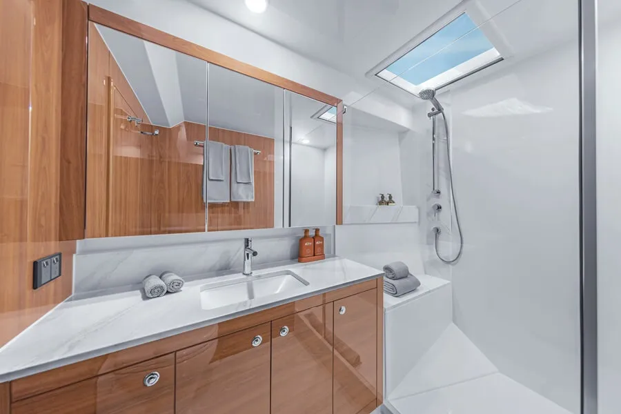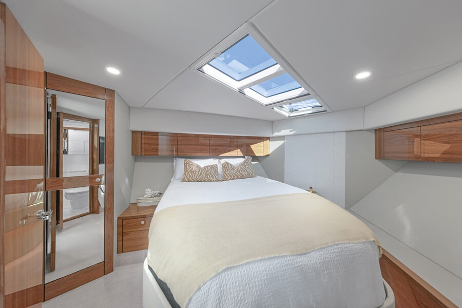The total-beam grasp stateroom provides extra space and storage than your typical 50-foot yacht