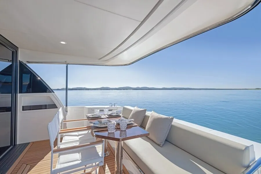 A standout characteristic is the built-in hydraulic lifting and hinging swim platform, which when elevated, shortens the vessel by 75cm, making it an ideal match for 15m berths widespread in lots of marinas. When prolonged, this journey deck is the best launch pad for kayaks, jetskis and different watertoys, and doubles as a water-level social zone, full with barbecue, sink, cooler, and hatch for lazarette entry.