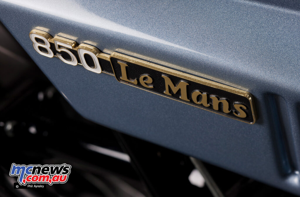 The unique 850 Le Mans, now generally known as the Collection I, was powered by the 844 cc overhead-valve V-twin developed by Tonti. The engine produced a claimed 80 horsepower, with roughly 71 horsepower delivered on the rear wheel at 7,300 rpm. Whereas the fundamental structure was shared with the 850T touring mannequin, the Le Mans engine featured greater compression pistons, bigger valves, a extra aggressive camshaft and 36 mm pumper Dell’Orto carburettors with velocity stacks. A lighter flywheel additional sharpened throttle response.